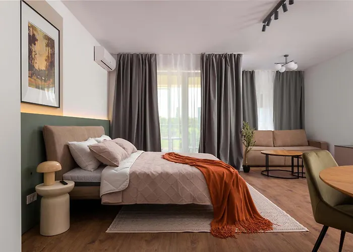 El Hubix Suites - City Of Mara Timisoara está situado a unos 10 minutos en coche del Estadio Dan Păltinișanu, y a 500 metros de Timisoara Turism. Este apartamento ofrece instalaciones modernas, como Wi-Fi y servicios esenciales como un aparcamiento privado gratuito para los que viajan en coche.